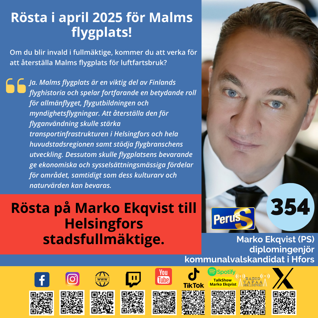 ← Om du blir invald i fullmäktige, kommer du att verka för att återställa Malms flygplats för luftfartsbruk?